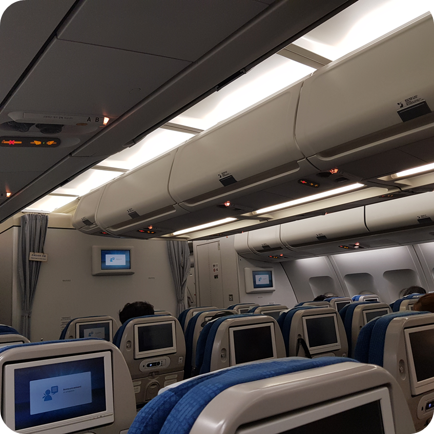 대한항공 KE464는 A330 기종으로 베트남 항공의 B777과 비교했을 때는 조금 아래급의 비행기라는 평을 받았습니다. 그렇지만 베트남 항공과 마찬가지로 복도가 2개가 있었습니다. 덕분에 통행에 불편함은 없었습니다.
