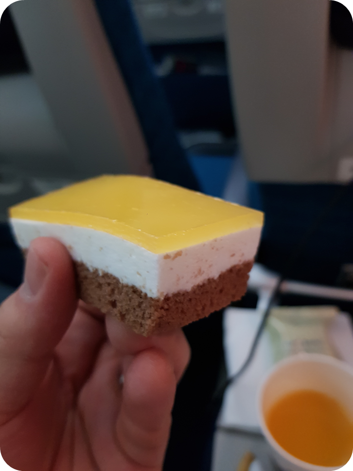 기대를 하지 않았는데, 생각보다 기내식이 맛있어서 놀랐습니다. 저는 치킨 스튜를 먹었는데, 막 차갑고 면도 맛 없을 줄 알았는데 소스가 맛있고 생각보다 닭고기도 부드러워서 정말 맛있게 먹었습니다. 인스턴트이니만큼 훌륭한 요리를 기대하긴 어렵지만, 배고파서 대충 떼운다는 생각은 전혀 들지 않을만큼 음식은 적당히 맛있었습니다.