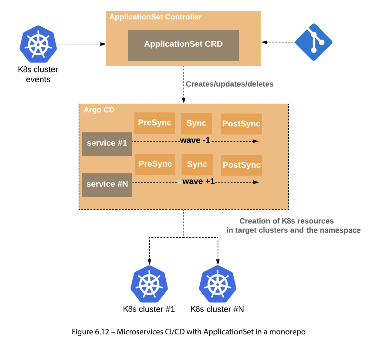 ArgoCD에서는 ApplicationSet CRD에 matrix-Generator라는 기능을 제공해준다. 이 기능을 이용하면 Mono-Repository에서 종속성을 가지는 MicroService의 배포를 순차적으로 처리할 수 있다. (https://argo-cd.readthedocs.io/en/stable/operator-manual/applicationset/Generators-Matrix/)
