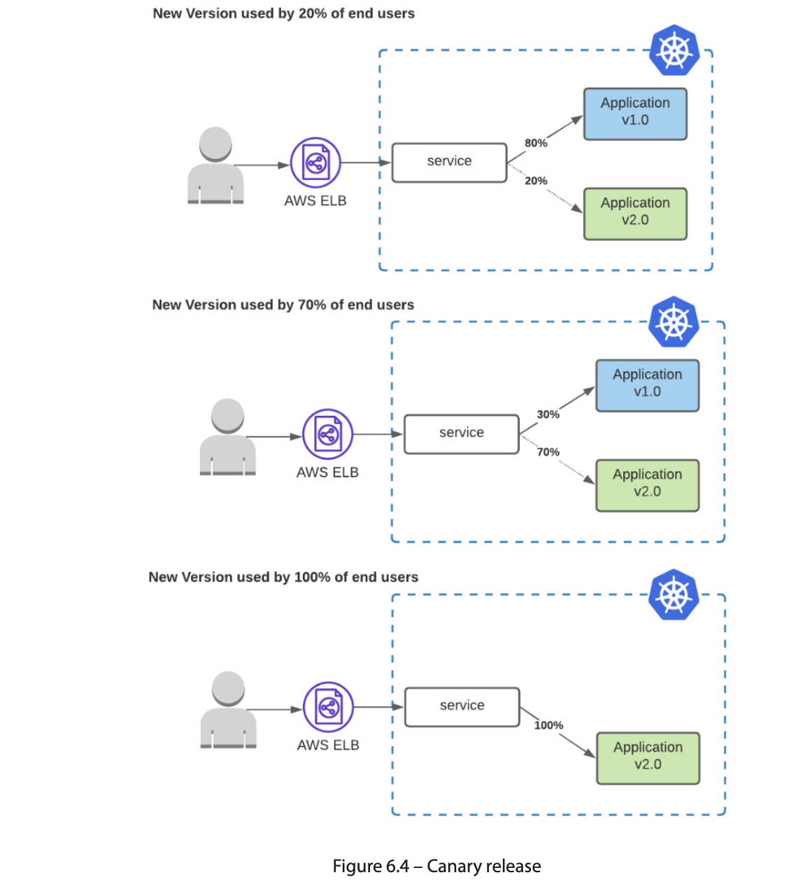 k8s로 전환할 때 가장 큰 문제 중 하나는 표준 롤링 업데이트처럼 정교한 배포 전략을 어떻게 설정할 수 있는지다. k8s에서 제공하고 있는 표준 롤링 업데이트는 모든 요구사항을 만족할 수 없기 때문이다. 새 버전을 배포하려고 할 때를 예로 들어보자.