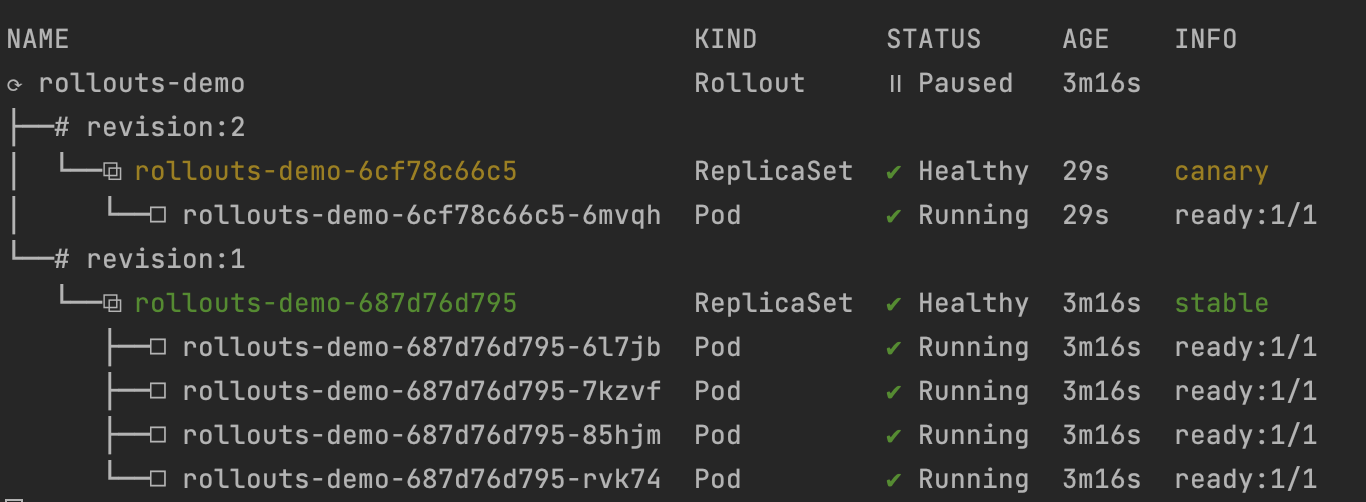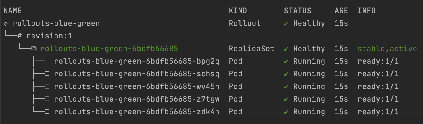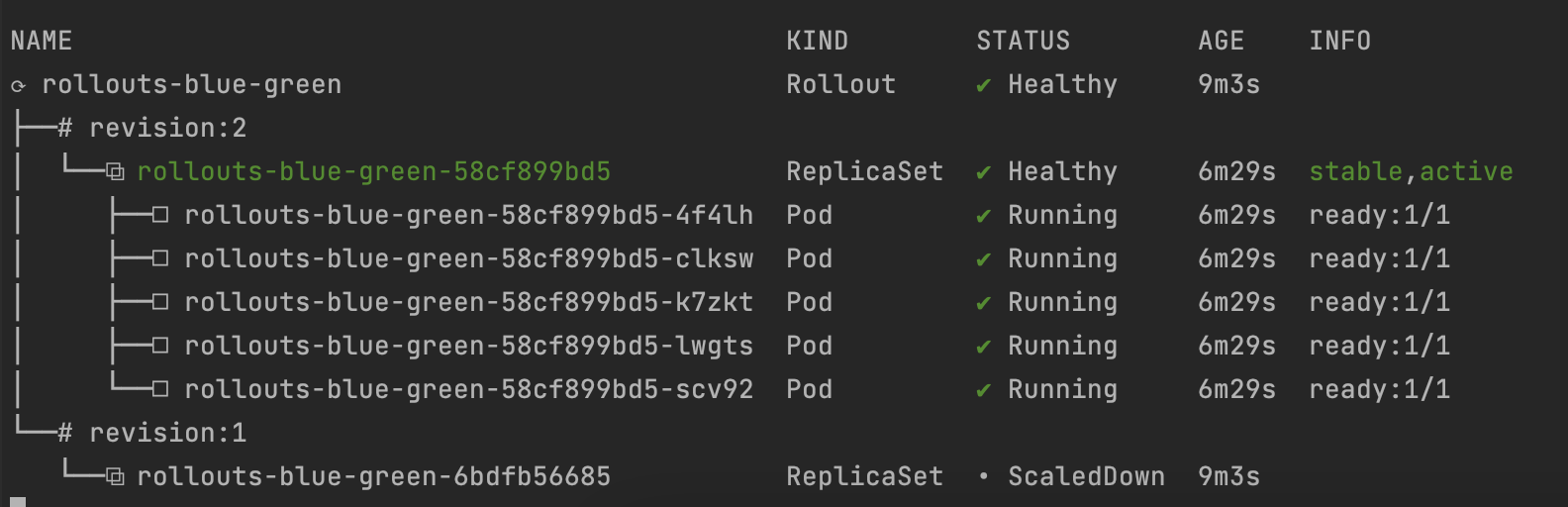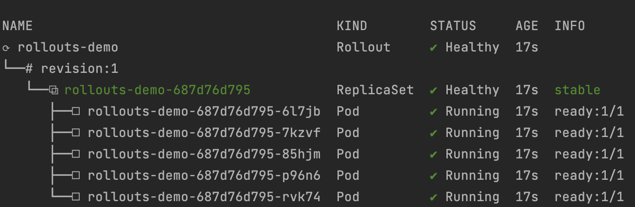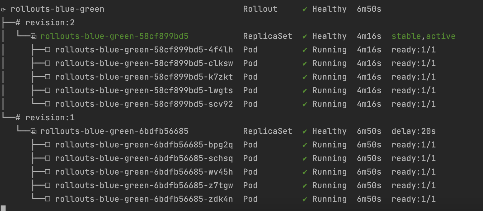 실제로 Argo Rollouts 컨트롤러는 일반적인 k8s deployments처럼 ReplicaSet의 라이프사이클을 관리한다. 예를 들어 이렇게 동작할 것이다.