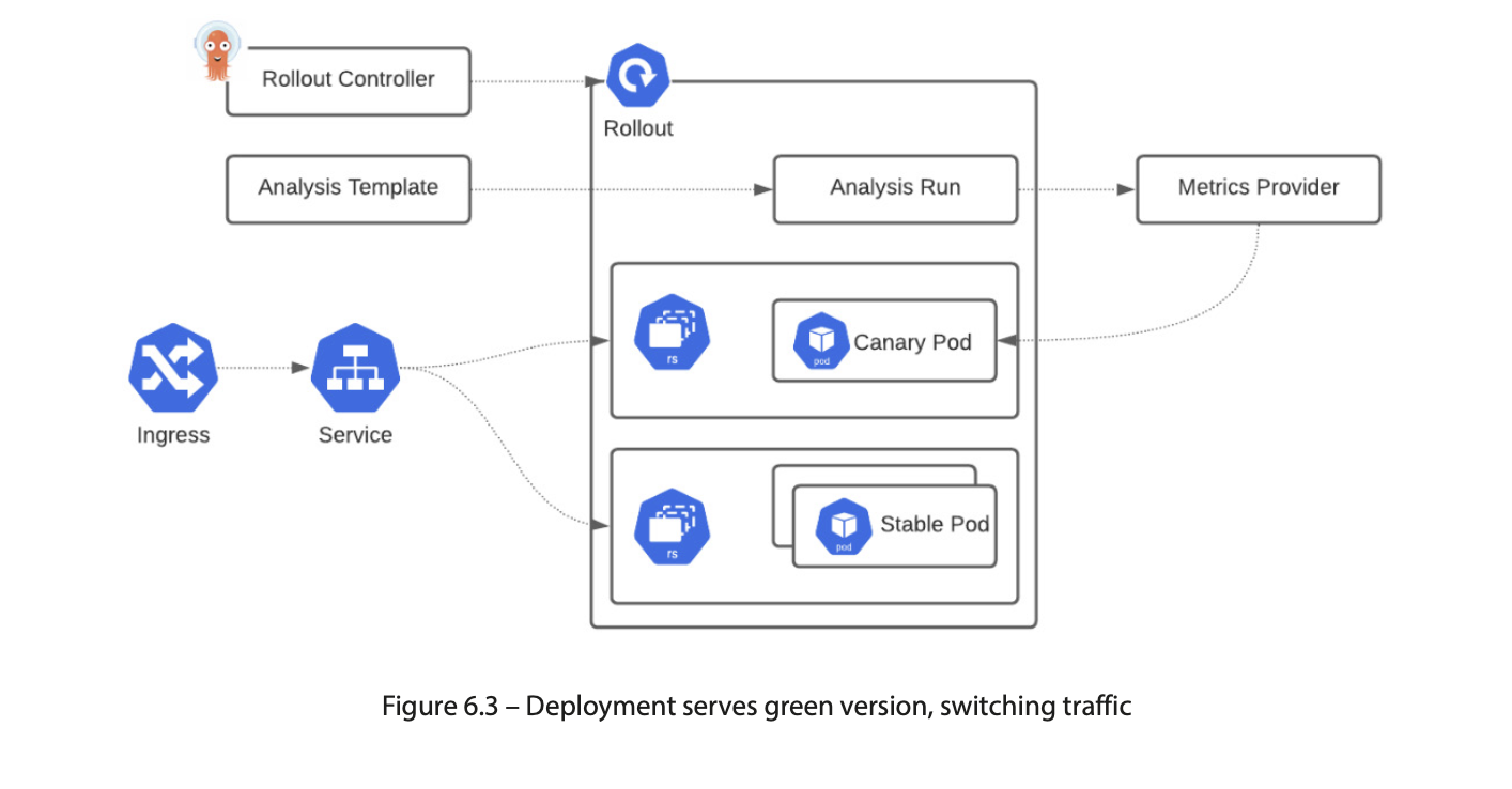 - 이 때 AnalysisRun은 Metric Provider로부터 메트릭을 받아서 Go/Stop을 결정함. Metric Provider는 Prometheus, DataDog등 다양함
