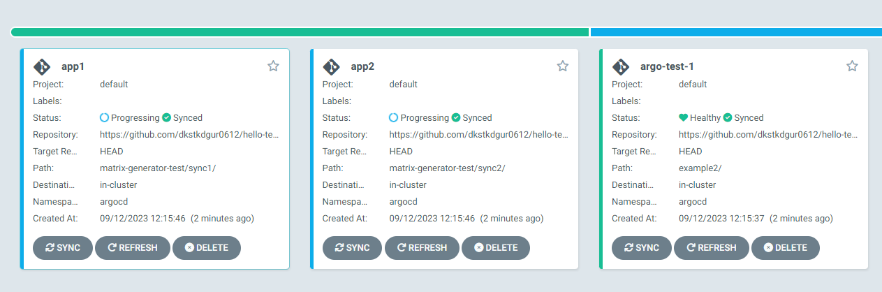 - 그런데 실제로는 app1, app2가 동시에 sync되고 있음.