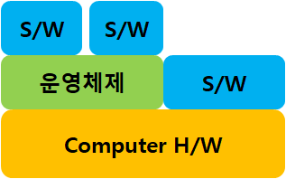 운영체제는 컴퓨터 H/W 위에 올라가는 S/W며, 각종 S/W와 사용자, 그리고 H/W를 연결해주는 역할을 하는 S/W다.