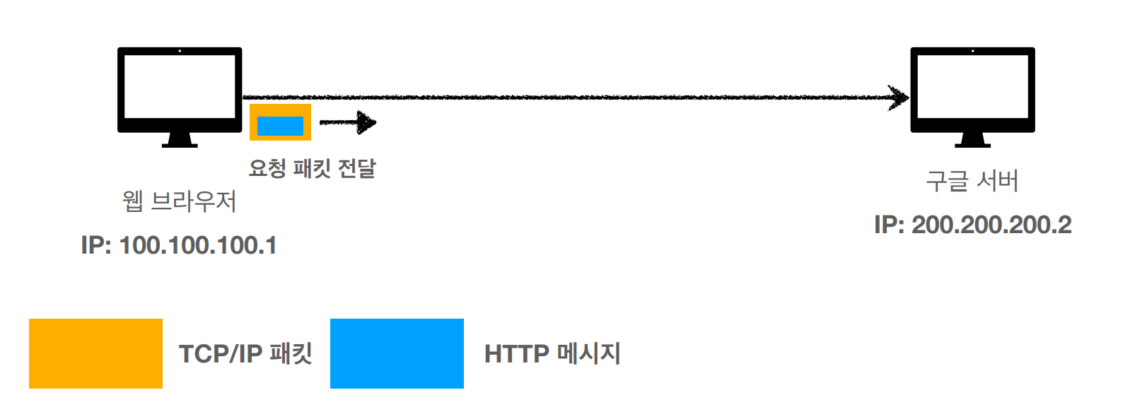 3. 연결이 되면 TCP/IP에서 HTTP 메세지를 포함한 TCP 세그먼트를 만들고, IP 패킷을 씌운다.
