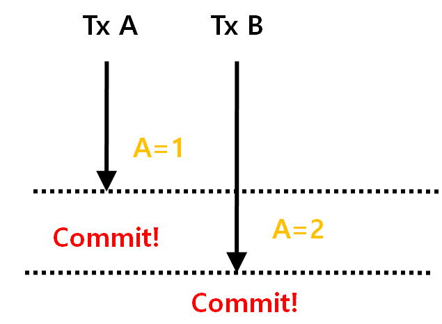 - 먼저 Commit 된 것이 DB에 반영됨.