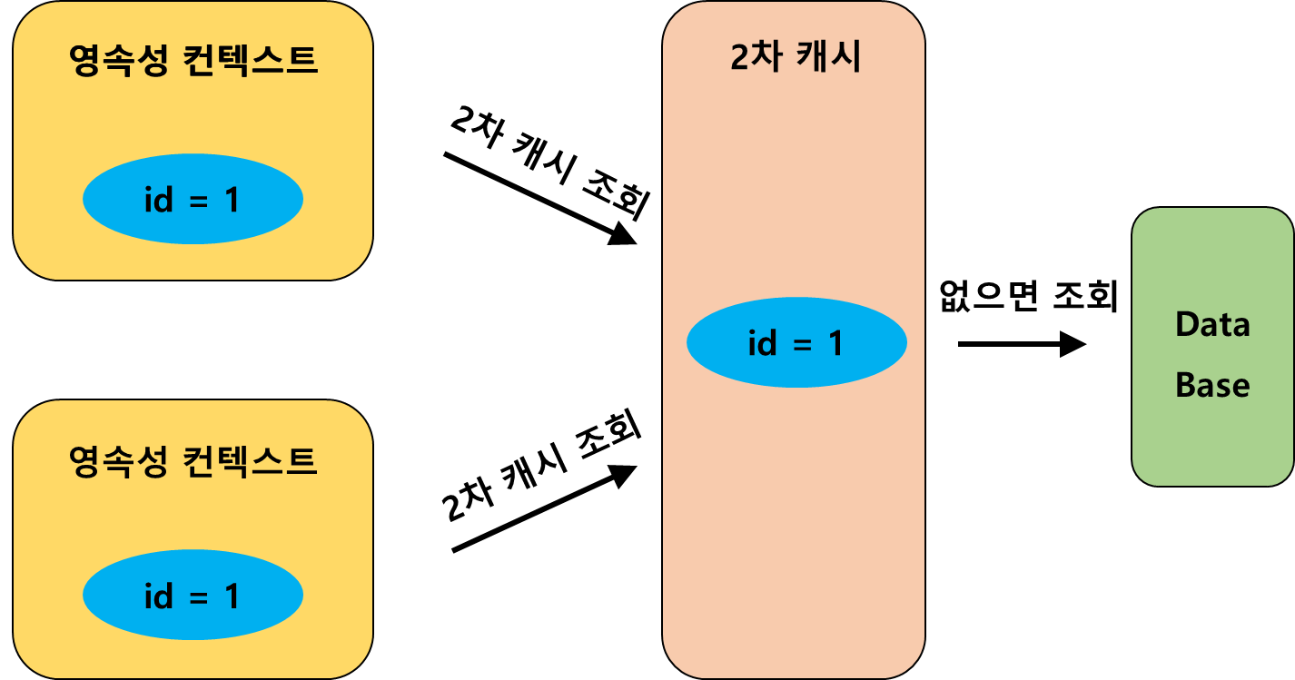 - 2차 캐시에 엔티티가 없으면 DB를 조회해서 결과를 2차 캐쉬에 보관한다.