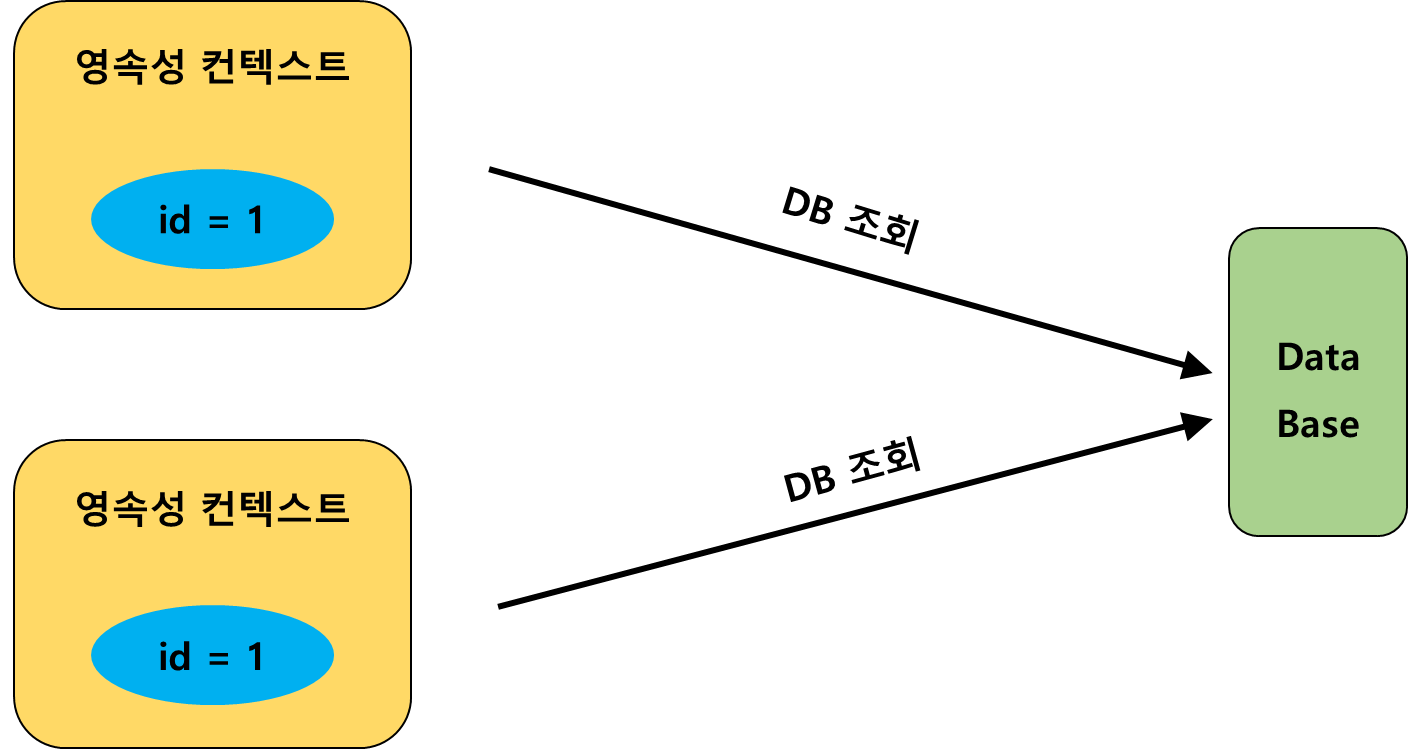 - 동일한 영속성 컨텍스트에는 객체 동일성(a == b)을 보장한다