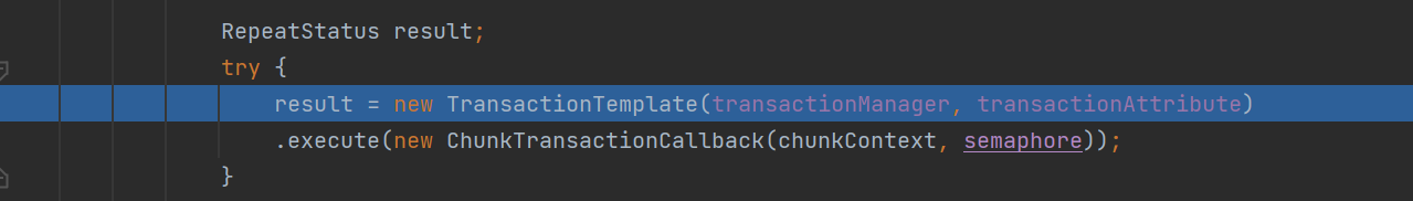 trasacationTemplate의 execute 메서드에서는 내부적으로 action.doInTransaction을 통해 Step을 실행시켜주는 단계로 넘어가는 것을 볼 수 있다.