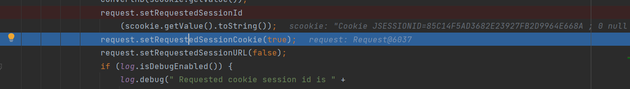 처음 HTTP 요청이 들어오면 CoyoteAdapter로 들어온다. CoyoteAdapater에서 setRequestedsessionId를 이용해서 값을 셋팅한다. 이 때, 이미 JSESSIONID가 존재하는 것을 확인할 수 있다.