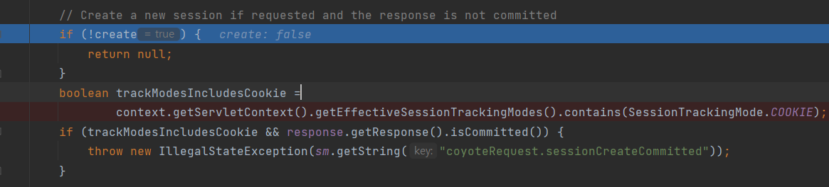 다시 Request 클래스로 돌아온다. 이 때, 세션 생성 설정을 하지 않다고 되면, Request에는 특정한 세션값이 설정되지 않은 채 반환된다.
