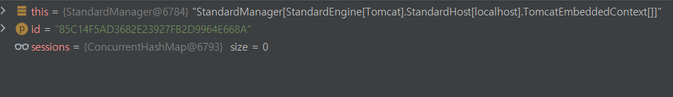 처음에 넘어오면 SessionId는 있으나, Sessions의 크기가 0인 것을 볼 수 있다. 즉 SessionId는 세션이 있건 없건 항상 생성되는 것이고, 이 값은 Request 객체에 넣어져서 요청 → 응답동안 유지가 된다. 만약에 추후 Session이 만들어지는 상황이 생기면, 세션을 하나 만들고 이 SessionId를 셋팅하게 될 것이다.