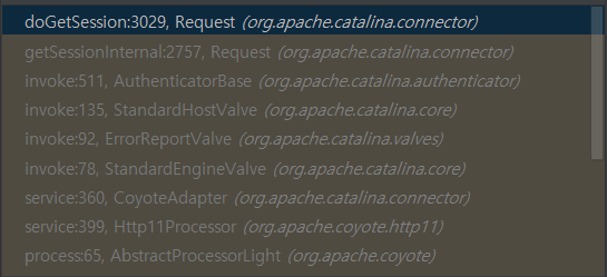 쭉쭉 디버깅을 하다보면 Catalina.Connector에서 Request 객체를 호출하면서, 세션을 가져오려고 한다.
